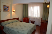 Do Bukurešti odlétám v 9:45 s rumuskou leteckou společností Tarom. Letím standardní A318, která není ani z poloviny plná (celkem letí jen 48 pasažérů), takže mám celou trojsedačku pro sebe :-), vlastně v celé řadě jsem sám. Let probíhá standardně. Docela mě potěšilo, že si musím trochu utáhovat bezpečnostní pás:-) ještě zhruba před rokem jsme musel v každém letadle potupně žádat o prodlužku:-) Takže nesporný důkaz, že hubnutí zdárně pokračuje. No a nebo jen mají Rumuni v letadlech delší pásy:-) Z letiště jedu autobusem 783 za 8,60LEI (1LEI = 6Kč), podařilo se mi o jednu zastávku přejet, tak jsem to měl do hotelu trochu dál. Ubytovávám se v hotelu Armonia, blízko centra (500LEI za tři noci), měl jsem zarezervovaný jednolůžkový pokoj, ale dali mi normální double, takže se budu moct v posteli rozvalovat:-)