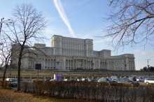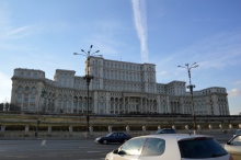 Po sprše vyrážím ven s několika cíli. Chci si dát něco k jídlu, protože je už skoro půl čtvrté a měl jsem dnes jen bagetku v letadle, pak potřebuji koupit microUSB nabíječku, abych mohl dobíjet telefon (no jo, hlava dubová nechala nabíječku doma:-) No a ještě bych rád někde sehnal nůžky na nehty, abych je nemusel pižlat těma, co mám na švýcarským nožíku:-) Všechno se daří, nůžky i nabíječka koupeny. A najedl jsem se také, potkal jsem takový místní mini fastfood, kde pečou různý snacky do ruky, takže jsem si dal párek v nějakém těstíčku za 2LEI (oni tomu teda říkali hotdog:-). A pak jsem se ještě prošel k tomu megalomanskýmu Paláci Parlamentu (alias Ceaușeskův Palác), což je údajně druhá největší (podlahovou plochou?) budova na světě - po Pentagonu. Procoural jsem toho pak ještě dost, cestou jsem si na nějakém náměstí dal svařák (5LEI) a byl naprosto výbornej, trochu jinak kořeněněj, než u nás, ale fakt gut. Vrátil jsem se na hotel, kde trochu dobijím telefon a čtu maily a trochu na ně odpovídám (to je hrůza, příště notebook nechávám doma a nepracuju:-)